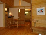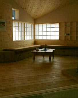 やはり北海道には、厳しい冬に耐え育まれてきた道産の木こそがふさわしい。そこで、道産の木材を多用した。構造材にはとど松・えぞ松の集成材、床は厚さ3cmのから松、カウンター材等は水楢・タモ、そして札幌で作られた木製サッシを用いた。