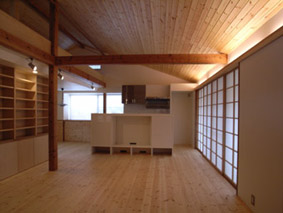 | 敷地は浜松市の中心部に程近いため住宅が密集しており、準防火地域に指定されている。そのため建築材料にはある程度の制約が必要となる。40坪という敷地の中に、車が2台停められるスペースを設け、当初はキッチン、風呂、トイレは共有ということだったが、途中からそれぞれに設ける完全2世帯住宅に変更になったため、どうしたら敷地を有効に利用できるかを考慮した。 お母さんは以前からお茶屋を営んでいたので、新しい家になっても是非続けていきたいと希望。地域に対して開かれた家、つまり地域のコミュニケーションを大切に暮らしていきたいと言う。一方子世帯は仕切りのない広々とした空間を、そして収納をすっきりしたいと希望する。 「鉄筋3階建ての住宅しか建てられないのではないかと思ったけど、このような住宅(木造の2階建)ができて、とても嬉しいです。」とSさん。確かにこの辺りは市の中心部に程近い住宅密集地なので、ただでさえいろんな制約がある。そのうえ敷地面積はご希望の完全2世帯住宅を叶えるには十分な広さだとは思えなかった。しかしそれらをなんとかクリアーして完成まで漕ぎつけることが出来ました。ご家族の皆さんも想像以上だと大変満足されているようです。先日のオープンハウスにはお父さんも参加してくださり、観葉植物を配置してくれたり、家の説明をしてくれたりと活躍してくれました。(文 村松利枝子) |