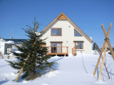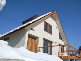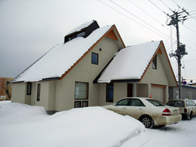 | 子供たちはそれぞれに独立し、定年を迎えたご夫婦のための住宅。 北海道という地域を考え、雪対策のため屋根を急勾配にしている。敷地は高低差があるものの、それをうまく利用して南側の低い面に木々を植えることで、あたかも森の中に浮かんでいるようなロケーションを味わうことが出来る。なんとも羨ましいかぎり!! 以前、所長の設計した家に住んでいたH夫妻でしたが、仕事の関係で転勤になり、その家を離れていました。定年を迎えたご主人が、今までの経験を生かし新たな仕事に就いた北海道の地で、もう一度所長の設計した家に住みたいと、わざわざホームページを検索して連絡をくれました。なんだかすご〜く嬉しいですね。 北海道という地域性を考慮しての設計なので、まるでスキー場にあるロッジの様です。ユーミンの歌に『ロッジで待つクリスマス』という曲があるけど、クリスマスはまさにそんな雰囲気で、とてもロマンチックでしょうね。所長の設計した住宅に住むのはこれで2軒目になるH夫妻。新しい家の住み心地をこれから満喫していただければと思いますが、奥様の要望の飾り棚にはたくさんの作品が並べられ、既に楽しまれているご様子。浜松にある家には今なお愛着があるようで、浜松に戻ったら今度はその家をリフォームしたいと建築に対する情熱を持ち続けているHご夫妻でした。(文 村松利枝子) |