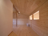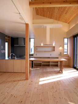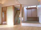 | 敷地は南側と西側に道路が走る角地で、比較的交通量が多い環境にある。西側にある公園や周りの景色をとりいれて、家の中に居ながらも外界を感じ安らぐことの出来るような空間造りを考えた。階段をあがる時にちょっとした小窓から眺められる緑の風景は心を和ませてくれる。 理想は南国のリゾートホテル(コテージ)。無垢の木を使った温もりのある空間、そして開放的な開口部からは気持ちの良い風が通り抜けていく。Mさんの仕事は精密さを要求され、常に緊張感で張りつめた毎日をおくっているので、癒しの空間としての住居を強く希望。特に浴室には強いこだわりを持っていた。広々とした浴槽が身体を優しく包み込み、一日の疲れを癒してくれるでしょう。 先日開催したオープンハウスは、当日は建て主のMさんご家族が引っ越されてくることもあり、AM10時〜PM2時30分までという短い時間でしたが沢山の人達が足を運んでくれました。いつもならばお昼には少しゆっくり出来るのですが、休む時間はなかったように思います。 先日、ご家族の写真が印刷されたを年賀状をいただきました。Mさんご家族がお正月を新居で迎えられたことを嬉しく思います。(村松利枝子) |
