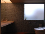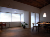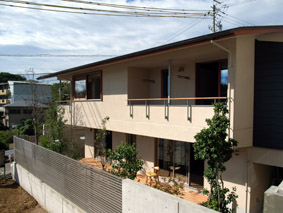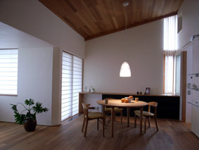 | 敷地は浜松市の中心部から程近い文教地区。変形敷地で、そのうえ高低差があり、非常に難易度が高い。経済面や工事期間のことを考えると、土地を埋め立てて整地するという選択もあったが、“土地のポテンシャルを生かした設計”を希望する建て主の想いを受け、このままの状態で設計を試みる。 悪条件を有効利用するために、スキップフロアーによる流れるような空間構築を考えた。そのため、この家は道路からも敷地からも浮き上がっているように見える。 まず玄関から4段上がってリビングに入ると、前方の窓からは緑の森が飛び込み、天井に沿って伸び上がるような吹き抜けの空間が広がっている。この部屋はスムーズな日常の動線を考慮し、特に細かな仕切りを設けていない。地階の子供部屋は互いのプライバシーを考慮して、玄関から直接入室可。そして“暮らしにガラスの彩りを”という建て主の感性を大切にして、窓や壁、仕切り等には硝子を多用している。健康と環境に考慮して空気集熱式ソーラーシステムを選択。 建て主Uさん御家族は、おしゃれでモダンな暮らしを望んでいました。 また土地のポテンシャルを生かした設計を強く希望していたのですが、そうは言っても 敷地は高低差があり、その上変形しているという設計する上では大変難しい土地。 だけど、それがより一層所長の創造力をかきたてたようです。建て主のUさんご家族は とっても満足してくれました。 この家の北側は、そこそこ交通量の多い道路に面しているのですが、そんな喧騒をいつの間にか忘れてしまいそうになります。なんだか不思議な家です。(村松利枝子) |