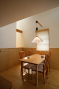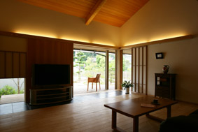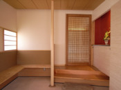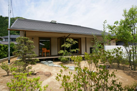 | 敷地は交通量の多い国道沿いにあり、騒音や振動の影響は避けられない。また、南西側には2階建ての隣家が迫っているため、日照の確保も課題のひとつ。ゆとりのあるはずの敷地は、かなりの変形である上に、方位も振れているので、有効利用をするための建物の配置に考慮しました。北西方向に連なる緑豊かな山並みは、この場に憩いを与えてくれるでしょう。 Oご夫妻が、何となく浜松産業展示場で行なわれていた住まい博に立ち寄った折、そこに展示されていた遠江・奏庵のパネルにとても共感したということで連絡をくれました。軒が深く、平屋のように見えるけど実は2階建てである点や、自然素材を使い、室内空間が一体となった奏庵がご夫婦の理想のようです。今年4月に浜松市と合併になった天竜区の山東にある庵という意味で“山東(さんとう)庵”と命名しました。 無事引っ越しも済ませ、新しい生活を始めたOさんご夫妻。先日、所長が訪ねると、「“夢のようだけど、夢じゃないんだよね”って云って暮らしています」との事。家に愛着を持って暮らしている様子が、思い浮かびます。長い時間を掛けて、手間を惜しまず、大切に育てられた庭の木々。 風雪に耐えながら、時を刻みつづけた、古美の味わいを持つ日本家屋 この場に、違和感なく溶け込むような慎ましい家を、私は置こうと思った(文 村松利枝子) |
