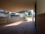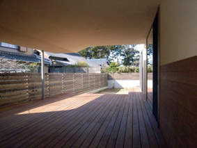 | ぽかぽか陽気の中、陽だまりの庭では愛犬たちが楽しそうに戯れている。ご主人は先ほどまで離れの小屋で夜釣りの準備に勤しんでいたのだが、いつのまにか木製デッキに身を預けて休憩中だ。ここは、まるで森の木陰のように気持ちいい風が縦横無尽に吹き抜ける。子供たちは家の中をいつも探検しては、毎日違う場所で遊んでいる。奥さんは束の間の休息をお気に入りのソファに腰を下ろし、読書タイム。これらの一部始終を横目で見て見ぬふりをしながら、愛猫たちは自由に出入りを繰り返す。ここには、住人それぞれが至福の時を満喫している暮らしがある。 母屋の北側の土地は、こうした生活が実現できそうな素地をはじめから持ち合わせていた。表の広い道路を車輌が通る際に発生する騒音や振動の影響は少なく、また冬の強い季節風は周囲に設けた高い生垣と西側の隣家が防御してくれるため、とても静かで穏やかだ。母屋との距離を適度に保ちつつ1年を通して日照・通風が計れるよう、敷地とのバランスを考慮しながらプランを進めていった。 東側の道路からは周囲に威圧感を与えないよう、1階の下屋を低く押さえたプロポーション。家と一体になった車庫の向こう側には愛犬が顔を覗かせる木製デッキ。車庫の南側には駐輪スペース。玄関と食品庫を一体で構成した広い土間。導入部だけとっても、これだけの魅力的なポイントが満載だ。いつか必ず個々の楽しみが家族全員に伝わり、その一員である愛犬や愛猫たちものびやかに暮らせることを願っている。(文 村松篤) |
