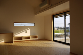 | ほぼ正方形に近い敷地が東西・南北ともに2区画並んだ計4区画のうち、Tさんの家は北西角の位置にある。ここから一望できる東側区画の先の田園風景は、幼少の頃に遊んでいた楽しい記憶が蘇るようで、とても懐かしい。