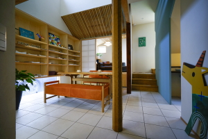 | リラックスルーム(和室)へ | リラックスルーム(上)、ギャラリー(下) |
