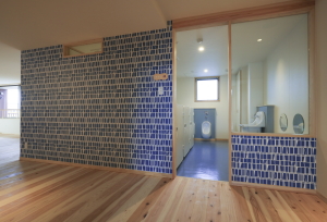 | 玄関からホール(けやき)へ | 園庭(上)、園児用WC(下) |