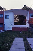 ダックスの町をあとにしてボルドーへと向かう途中、レジュという小さな町に立ち寄った。ル・コルビュジェの初期の作品シテ・ドゥ・レジュを見るためである。入口の看板にはコルビュジェの名前が記され、今でもここのオーナーが彼に対して敬意を払っていることがうかがわれた。それぞれの住宅へと足を運んでみる。パステルピンク調に塗られたフラットルーフの家、これが何軒も続く。太陽光線の強さも手伝ってか、私にはとても眩しく感じられる反面、あまり落ち着いた気分にはなれないでいた。その時,一番奥の家だけが、なぜか鈍い光を放っているように思えた。よく見ればこの家だけ三角の勾配屋根が掛けられ、外装は相当荒れ果てている。人が住んでいる様子はなく、すでに廃墟と化していた。だが、直径200ミリのコンクリート柱や、細い断面のコンクリート製パーゴラ等はどうも当時のものらしく、状態は決してよくないが、まるで何かを語りかけてくるかのような迫力さえ感じられる。聞いてみれば,この家だけがオリジナルの構造体にあとから三角屋根を掛けたものだとのことで、他はすべて当時に似せて建て替えたものらしい。そう言われれば、あの外壁の艶やかさや開口部のアルミサッシュ等は、オリジナルでないのが一目瞭然だし、眩しく感じられたのもきっとこれが要因なんだと、妙に納得せずにはいられないでいた。 約75年前に建てられたこの集合住宅。日本では当の昔に壊され、跡地には何か別のものが建っている現実を考えたとき、建て替えられたとはいえオリジナルのままそっくりその建築を残そうとする国民性の違いに、胸を熱くしていた。