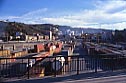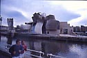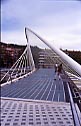 30年以上前、私が通う小学校脇の道路には、鉄製の陸橋(歩道橋)が掛けられていた。その頃は、よくそこに昇って友達と遊んでいたものだ.今思えばたかが人間を歩かせるためだけの橋なのかもしれないが、どうしてもっと面白い夢を与えてくれるような美しい橋にならなかったのかなと感じてしまう。どの橋を見てもそうたいした差は見当たらない。それどころか使っている材料や、直線で構成された形(一部らせん状のものもあったが)そして色合いまでまったく同じとはどういうことなのだろう。これが以前の公共建築のあり方なのかな、だとすればとても悲しいことだなと実感してしまう。まあ、それでも最近は瀬戸大橋やレインボーブリッジのような美しい橋も出来てきたことだし、あまり悲観的になるのは気持ちが前向きになれないので、もうこのへんでおしまい。 さて、話をスペインのビルバオに戻そう。グッゲンハイム美術館のすぐ近くになんとも美しい流れるようなデザインの橋が掛かっている。スペインの建築家サンティアゴ・カラトラヴァによる設計で、まるで夢の掛け橋のように光り輝いている。川を横断する橋なら人間だけでなく、一緒に車も通してしまおうとすぐ考える日本とは何もかも違った発想になるのは単なる文化の違いなのか?それともあまりこの橋に車を通す必要性を感じていないからなのか?よく分からないが、この歩道橋はこの場にとてもよく馴染んでいるばかりでなく活力を与えている橋なのだと強く感じた。私のまちにも、こんな素敵な橋があったらいいのになあ。