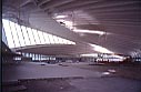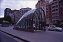 ここスペインの民族は、民族間の争いが未だに絶えないと聞いてはいたが、まさかこの地下鉄で警官に詰められようとは思いもしなかった。ビルバオ地下鉄駅はイギリスの建築家、ノーマン・フォスターによるものだが、地下に降りていくガラス箱の入口がどれも斬新で多くの見学者が訪れる。我々も例外なくカメラ片手にとにかく写真を撮り続けていた。内部はグレーカラーで統一されているのでとても暗い。当然ストロボ撮影をしなければならず(高感度フィルムではなかったので)なるべく陰に隠れてシャッターを押していた。必要なところを撮り終えて、 さあ帰ろうと思ったその瞬間、警官がものすごい形相で前に立ちはだかって何か叫んでいるではないか。少々たじろぎはしたものの、ただただ平謝り。そういえばずいぶん前から場内のマイクで何か怒鳴っているのは聞こえていたが、それは私に対しての注意勧告だったようだ。(写真を悪用して爆弾を仕掛けたりするような人達が今でもいるので、警官は眼を光らせているらしい。)私は意味不明の愛想笑いを浮かべてようやく地上に上がることができた。本日最後の見学は、工事中のビルバオ新空港。ついさきほど見た歩道橋と同じ設計者の自信作で2000年の開港を目指している。その姿は多分遠くからでもあれだと分かるくらいのインパクト、すなわちひとめ見て空港だと思えるような分かりやすいデザインでまとめられていて、とても美しい。歩道橋も空港もそれ ぞれモチーフは違うものの、どちらも構造体が機能美として、まとめられている点は共通であろう。一日も早い完成が待たれる。こうして建築探訪は、初日からてんこもりの内容で幕を開けた。沢山見れば、それでいいという訳では決してないが、これまで体験したことのない建築に出会えたことは自分とって少なからず今後の仕事の肥やしになるだろうと感じている。建築は図面や写真・ビデオをいくら見ても結局は理解できない。その場に自分の身を置いてはじめて味わうその空気こそが何よりもの財産になるのではないだろうか。