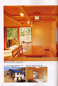 | 私の家づくり40、美しい部屋別冊 2002/01月発行 主婦と生活社 (内容) 春までに欲しい子供部屋! "ドアがない子供部屋は踊り場からキャットウォークまで2階全体が専用スペース"というタイトル通り2階の子供部屋は開放的なスペースが広がっています。 これなら、雪国(喜多方)の長い冬も、部屋の中で充分に遊びまわることができることでしょう。もちろん太陽エネルギーを利用したOMソーラーシステムのため、部屋の中は温かく快適です。コッコハウス |
